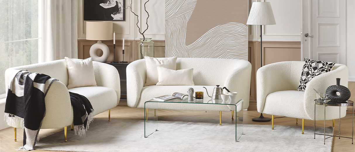Pouffe BEAUFORT Boucle Light Brown 60 cm 60 cm 27 cm